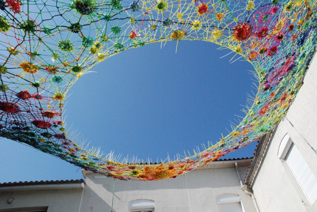 Article Sud Ouest /Archipels féérique/ 2017/ Dordogne/ Publié le 0209201715052019 par Valérie Champigny Une création textile dont l’ombre participe à l’œuvre.