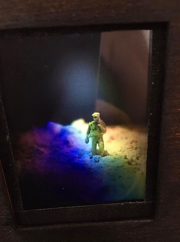 Indépendamment de la continuité de ma pratique artistique, les « micro-mondes » sont une des répliques que j’ai trouvée par un engagement esthétique c’est-à-dire qui engage pleinement l’éveil de ma sensibilité dans la poésie de l’ordinaire marqué par la contrainte du confinement. Les personnages des Micromondes sont maintenant confinés dans une soixantaine de boîtes lumineuses