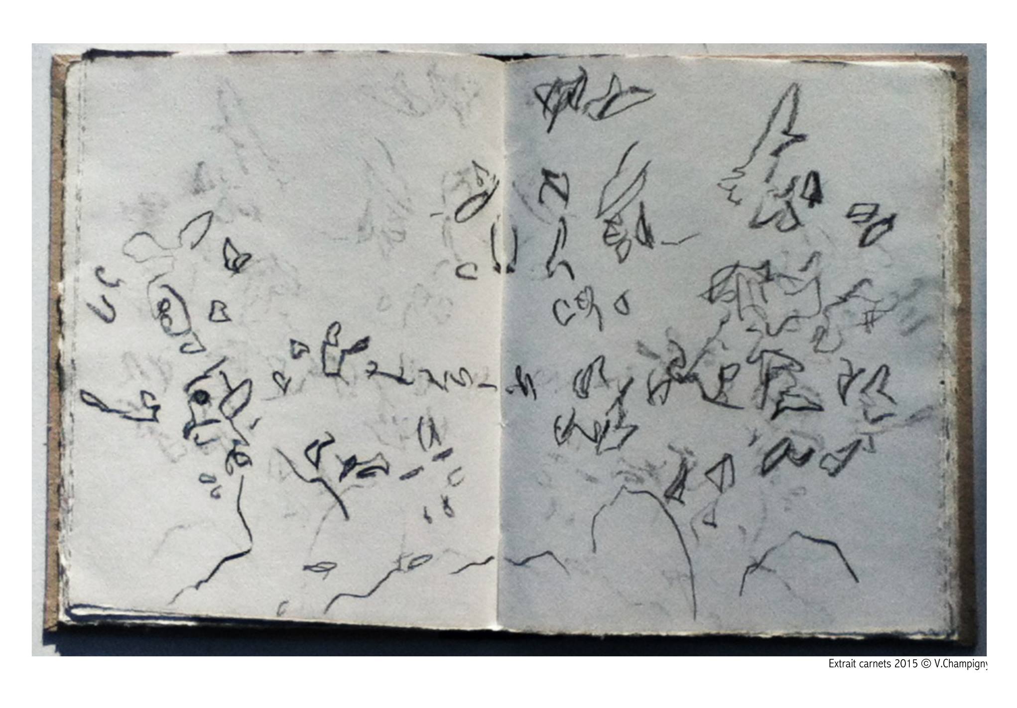 – Lorenzo H Pour moi vous dépeignez, c-à-d. vous peignez en couleur et en trois dimensions des objets ou paysages de la nature devant vous et devant vos yeux. Puis vous dépeignez en retirant la couleur et il reste sur le papier des carnets des impressions du relief et de volumes posés.
